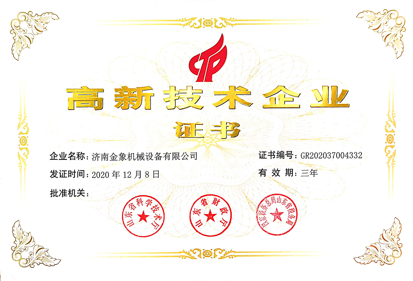 根據(jù)國家《高新技術企業(yè)認定管理辦法》和《高新技術企業(yè)認定管理工作指引》的相關規(guī)定,濟南金象機械設備有限公司被認定為國家級高新技術企業(yè)。